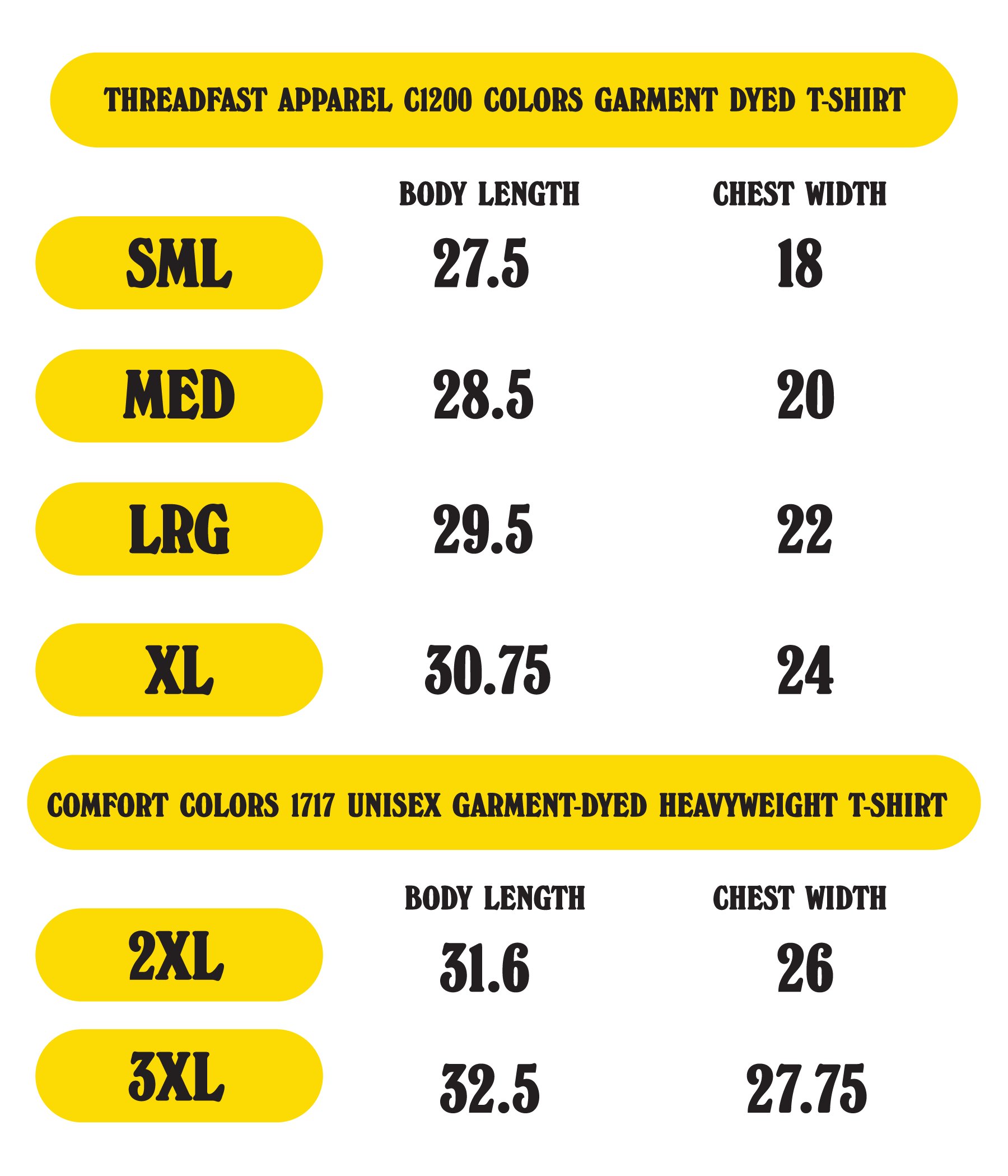 Screen printed locally in PA using Red & White ink on a Black Threadfast Apparel C1200 Colors Garment Dyed T-Shirt.