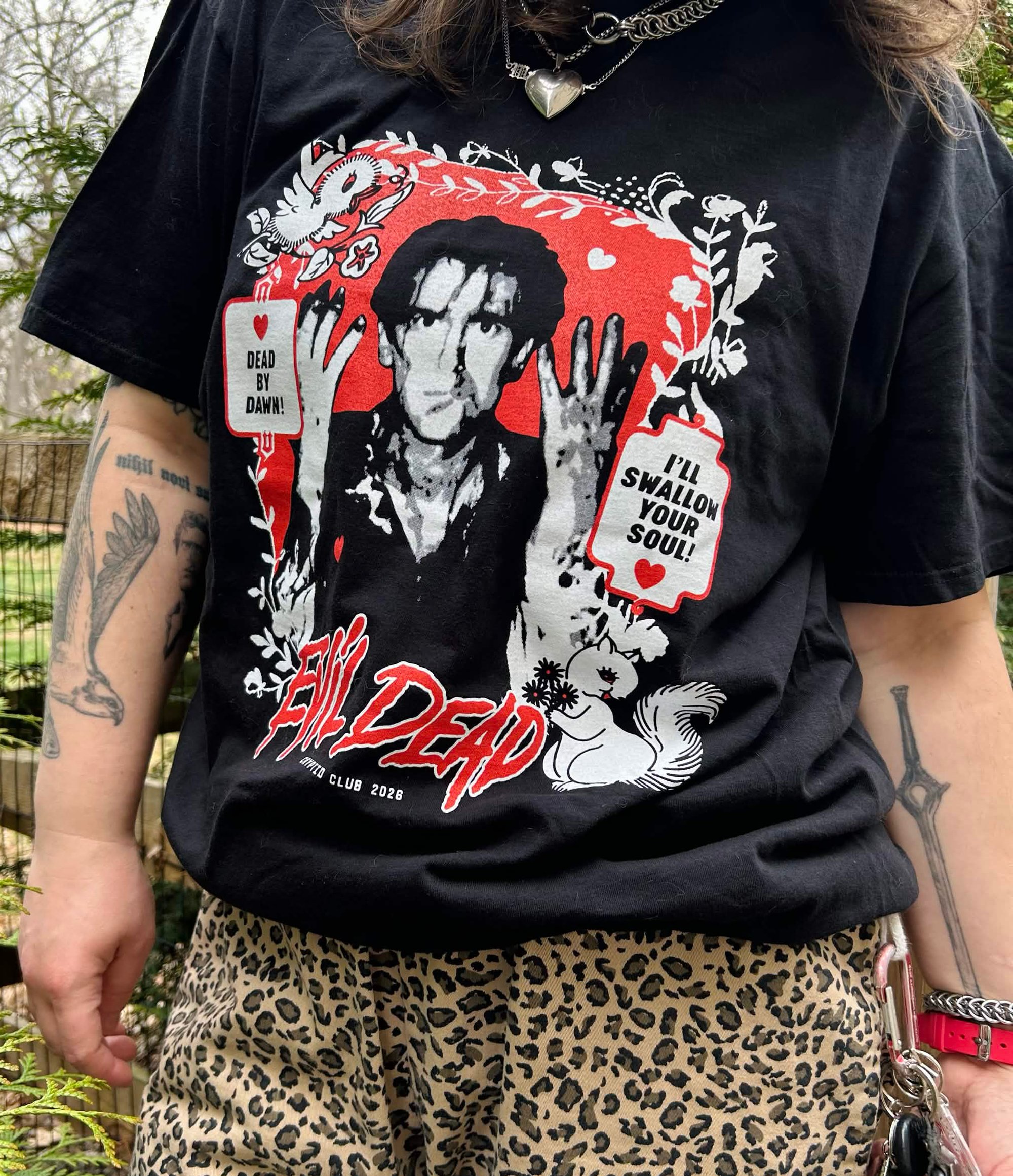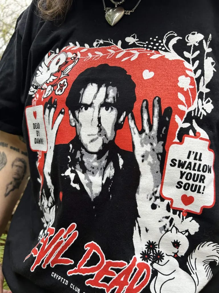 Ash Williams Woodland Critters Garment Dyed Screen Printed Black T-Shirt
