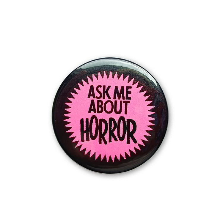 Ask Me About Horror Pink 1.5" Button