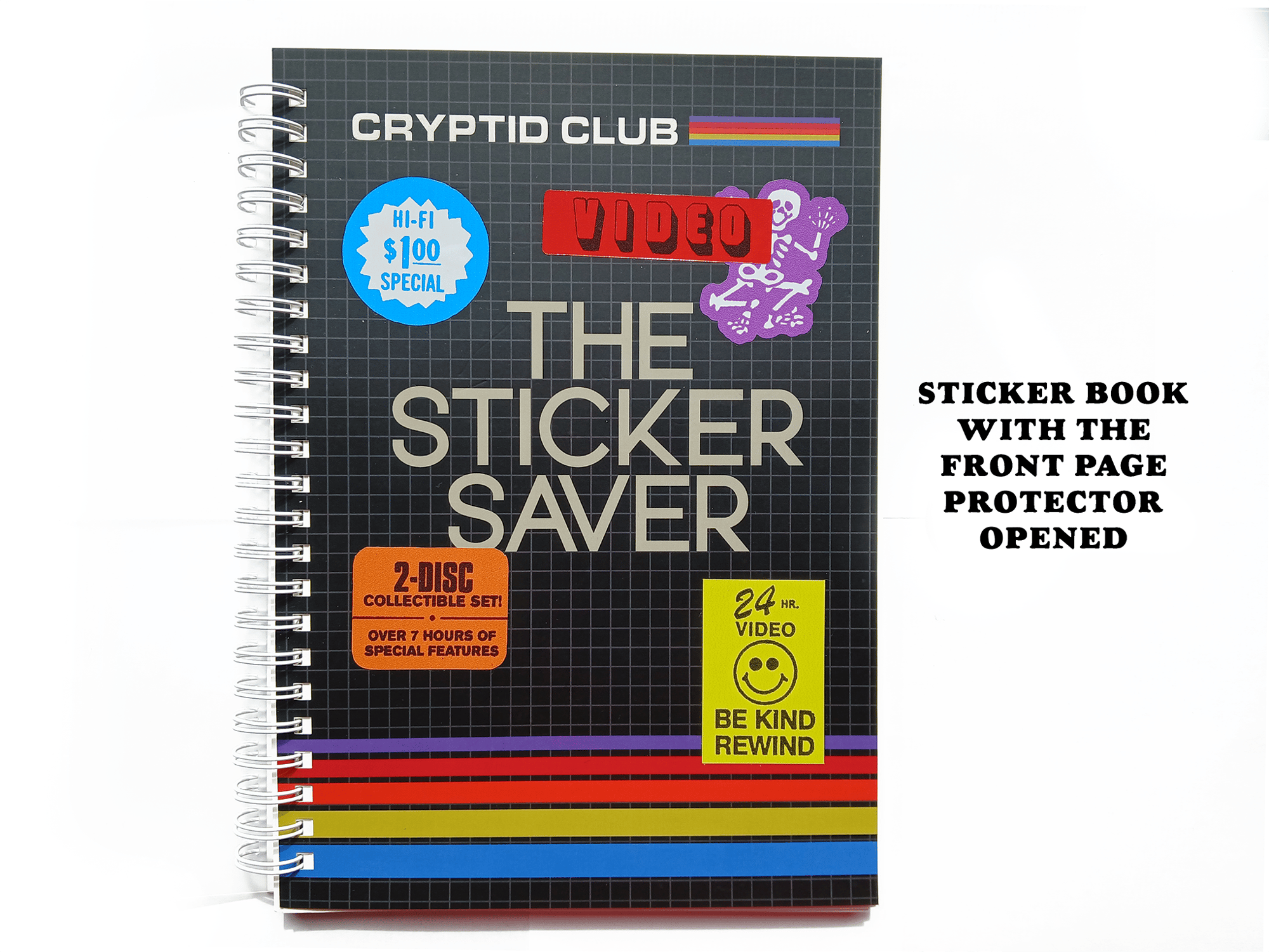 A reusable sticker book with an original design by myself on the back and front. The back has the same rainbow stripes as the front, but no text, so plenty of room to decorate with stickers if you'd like!