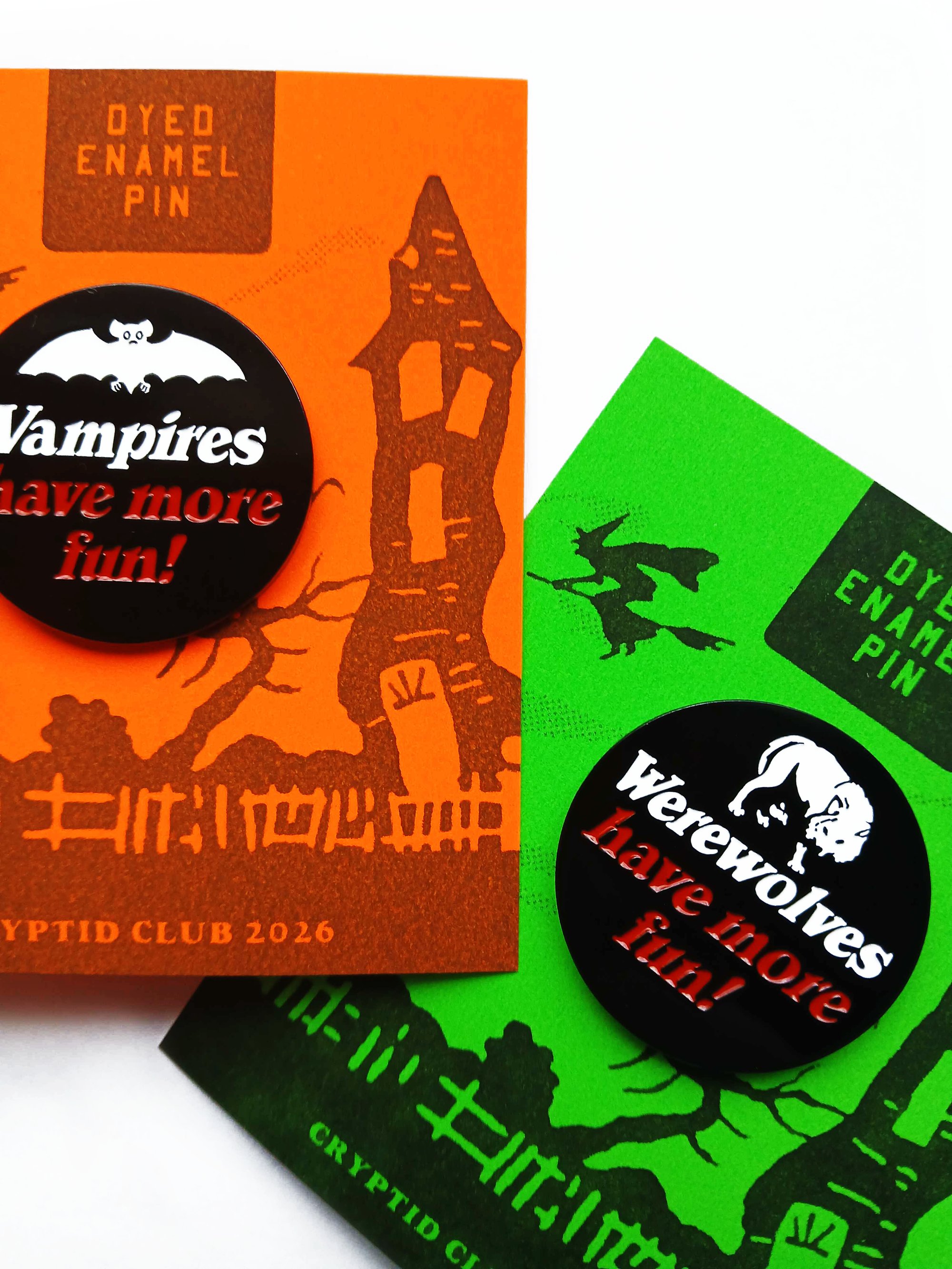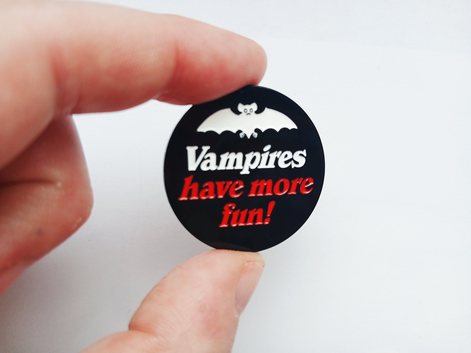 Vampires Have More Fun 1.25" Dyed Black Enamel Pin